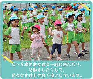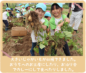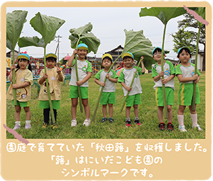 ☆広い園庭でたくさん遊んだり、動植物と触れ合ったり、畑での収穫を楽しんだりして、身近な自然と触れ合うことを大切にしています。
