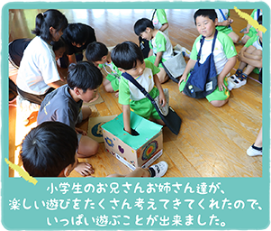 ☆色々な物を作って遊んだり、踊ったり歌ったりして、生き生きと表現できる遊びや活動を大切にしています。