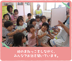 ☆絵本の読み聞かせや大型紙芝居・人形劇などを通して、たくさんのお話しを楽しみます。
