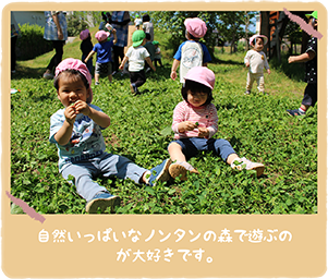 ☆広い園庭でたくさん遊んだり、動植物と触れ合ったり、畑での収穫を楽しんだりして、身近な自然と触れ合うことを大切にしています。