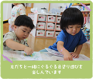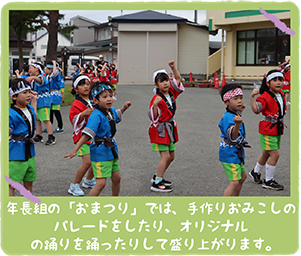 ☆色々な物を作って遊んだり、踊ったり歌ったりして、生き生きと表現できる遊びや活動を大切にしています。